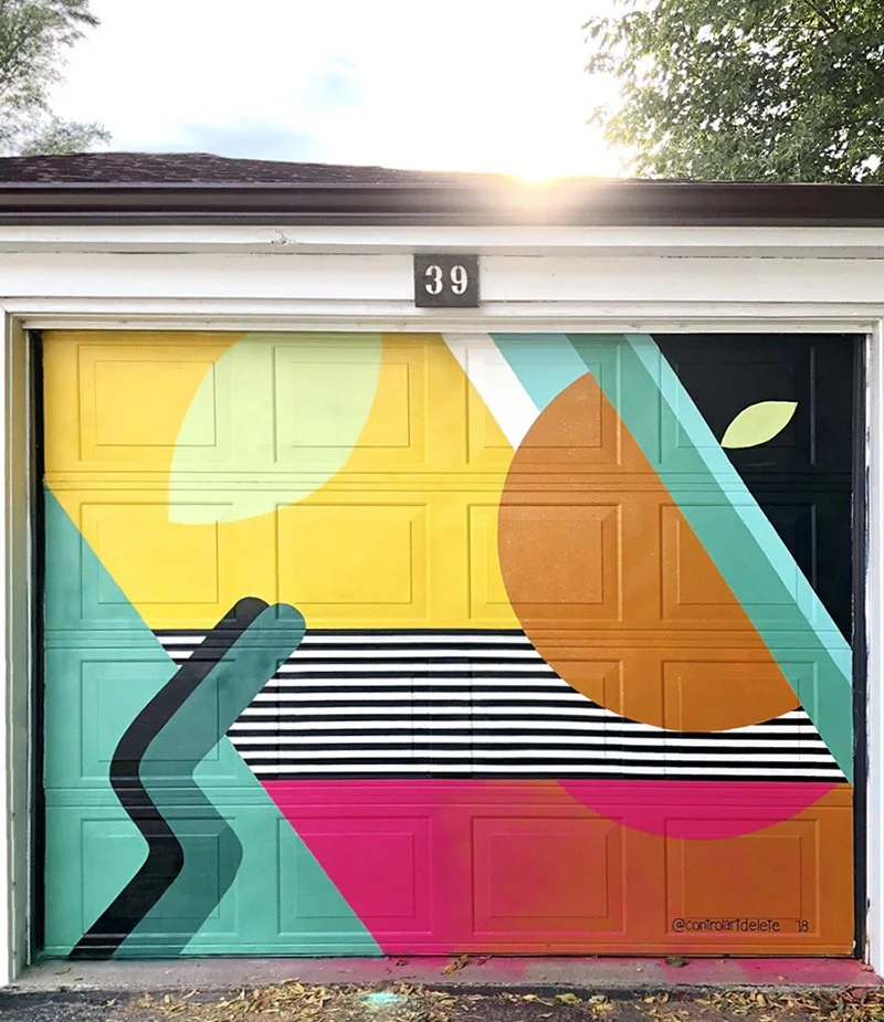 10’ by 8"‘ garage door mural on Latrell Loop in Toronto. Painted in partnership with The Danforth Neighbourhood Revitalization Program and The Laneway Project.