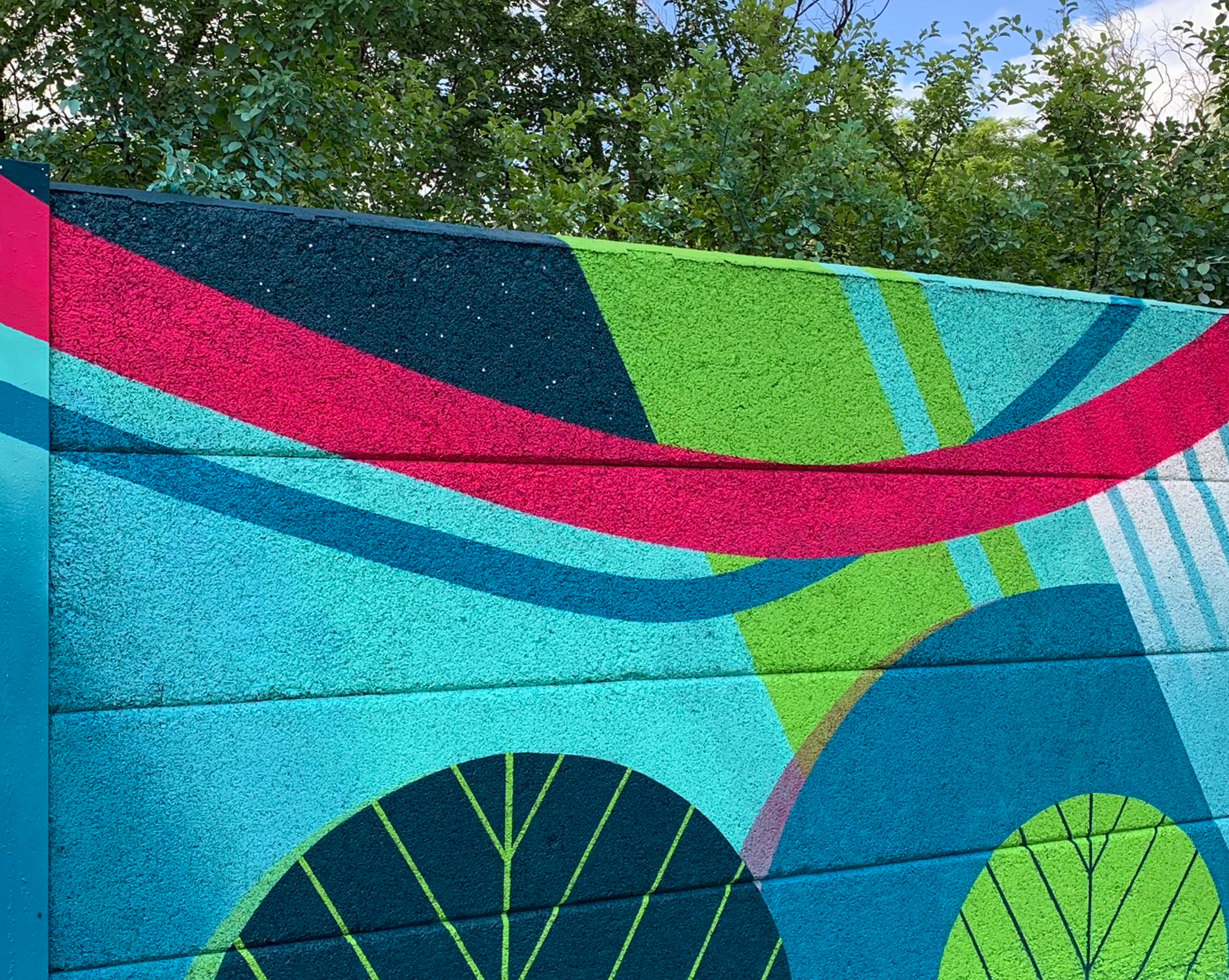 “The final project was the outcome of extensive community consultations and collaborations. Each mural is inspired by the theme “Natural Resiliency” and is distinct yet connected and blends the voices of community members. Spanning 576 feet along Finch Avenue West between Kipling and Islington, the series of murals is a collection of meaningful and vibrant public artworks.” - Arts Etobicoke