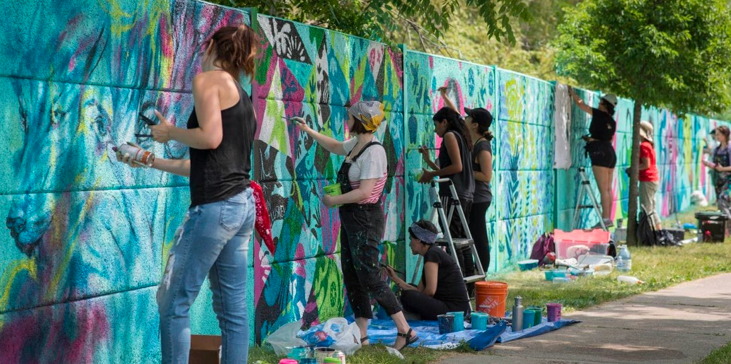 25’ by 8’ mural created as part of the Women Paint initiative in Etobicoke, Toronto. 33 artists contributed throughout the weekend to produce over 4,500 sq ft of art.