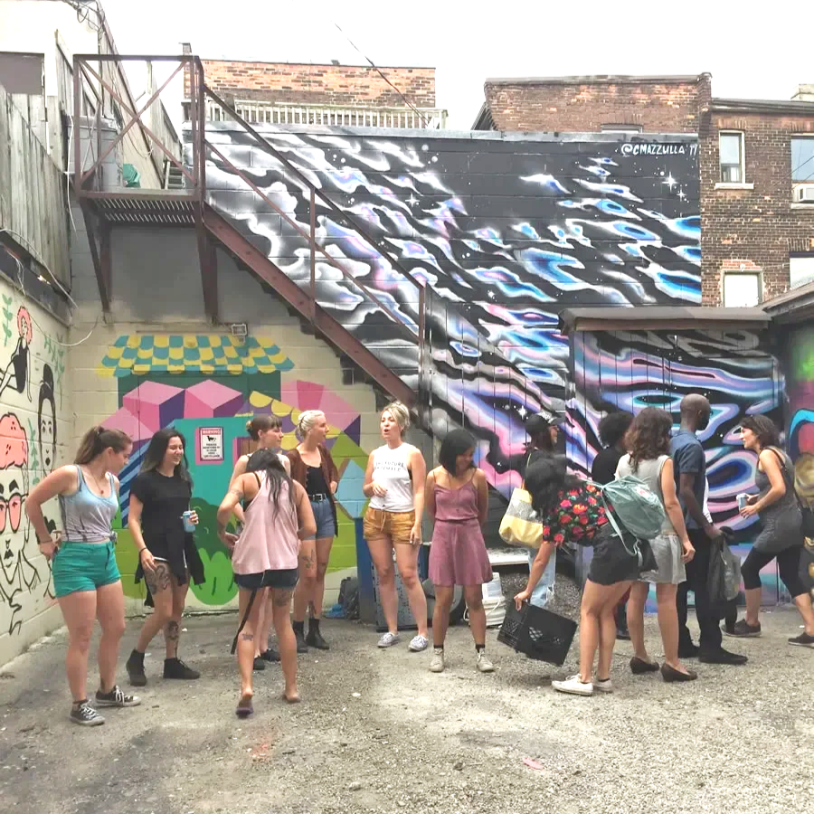 8’ by 13’ mural created as part of the Women Paint project in Parkdale, Toronto. 20 artists contributed throughout the weekend to produce over 2000 sq ft of art.